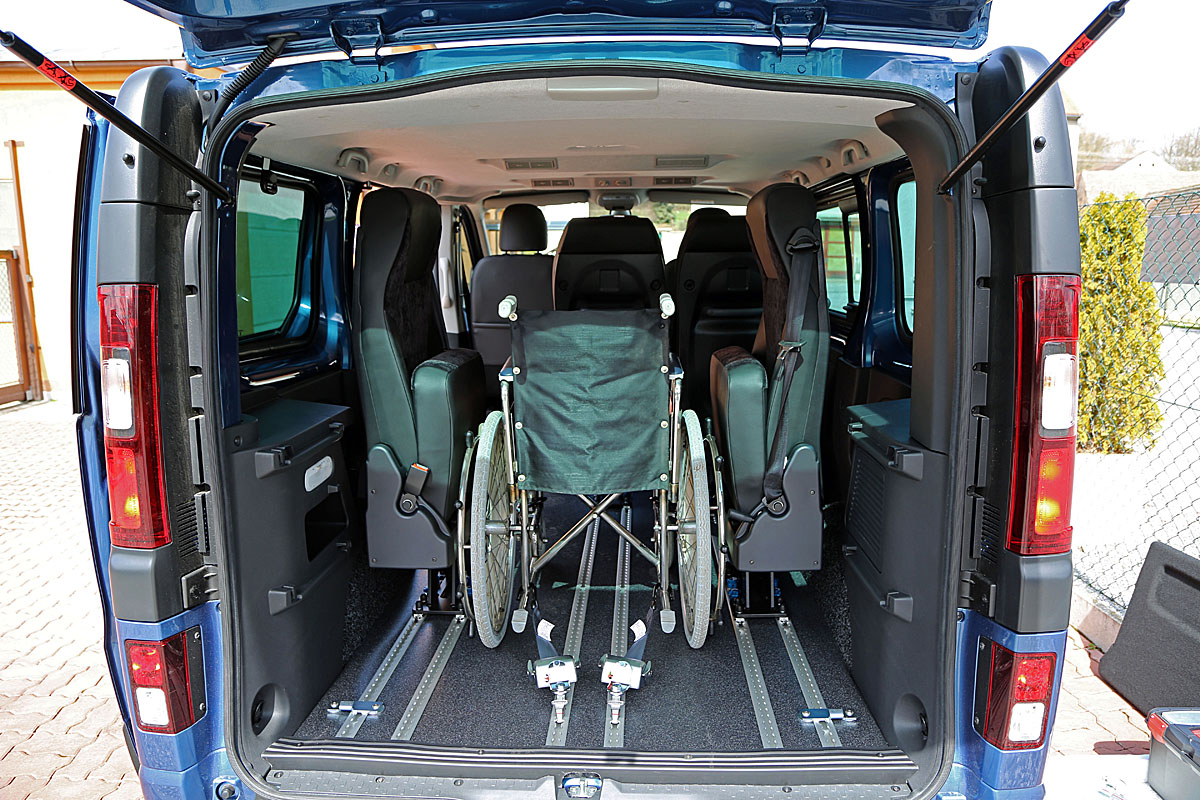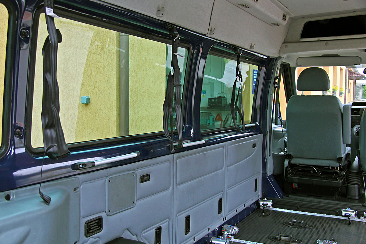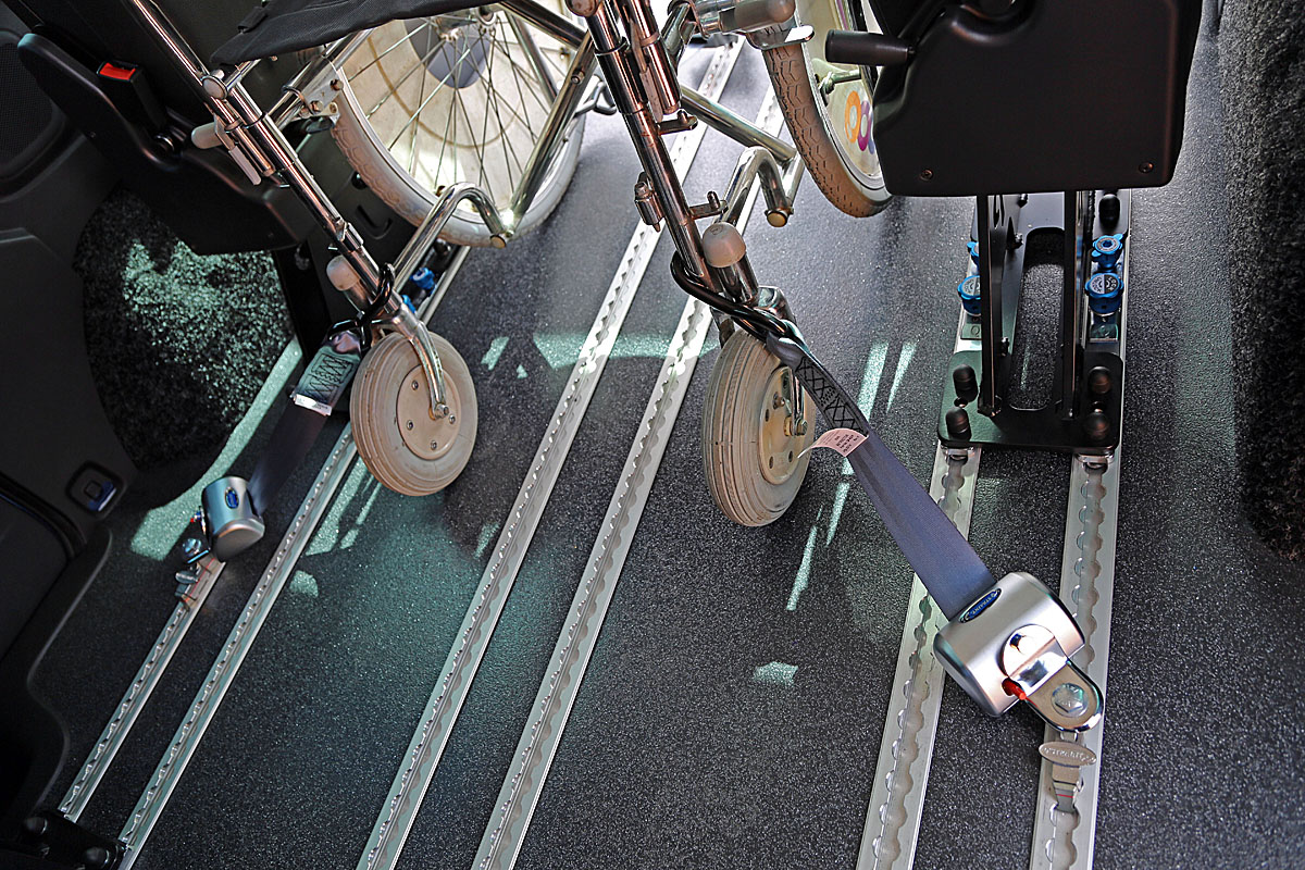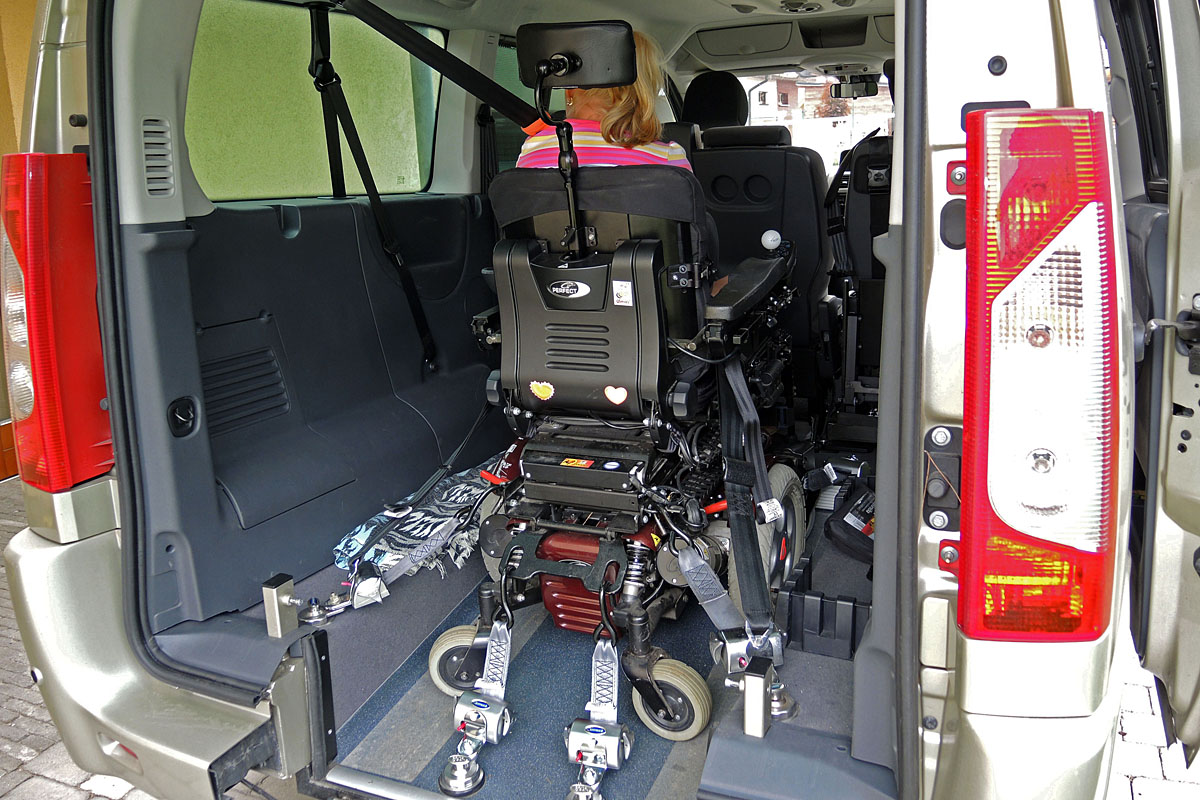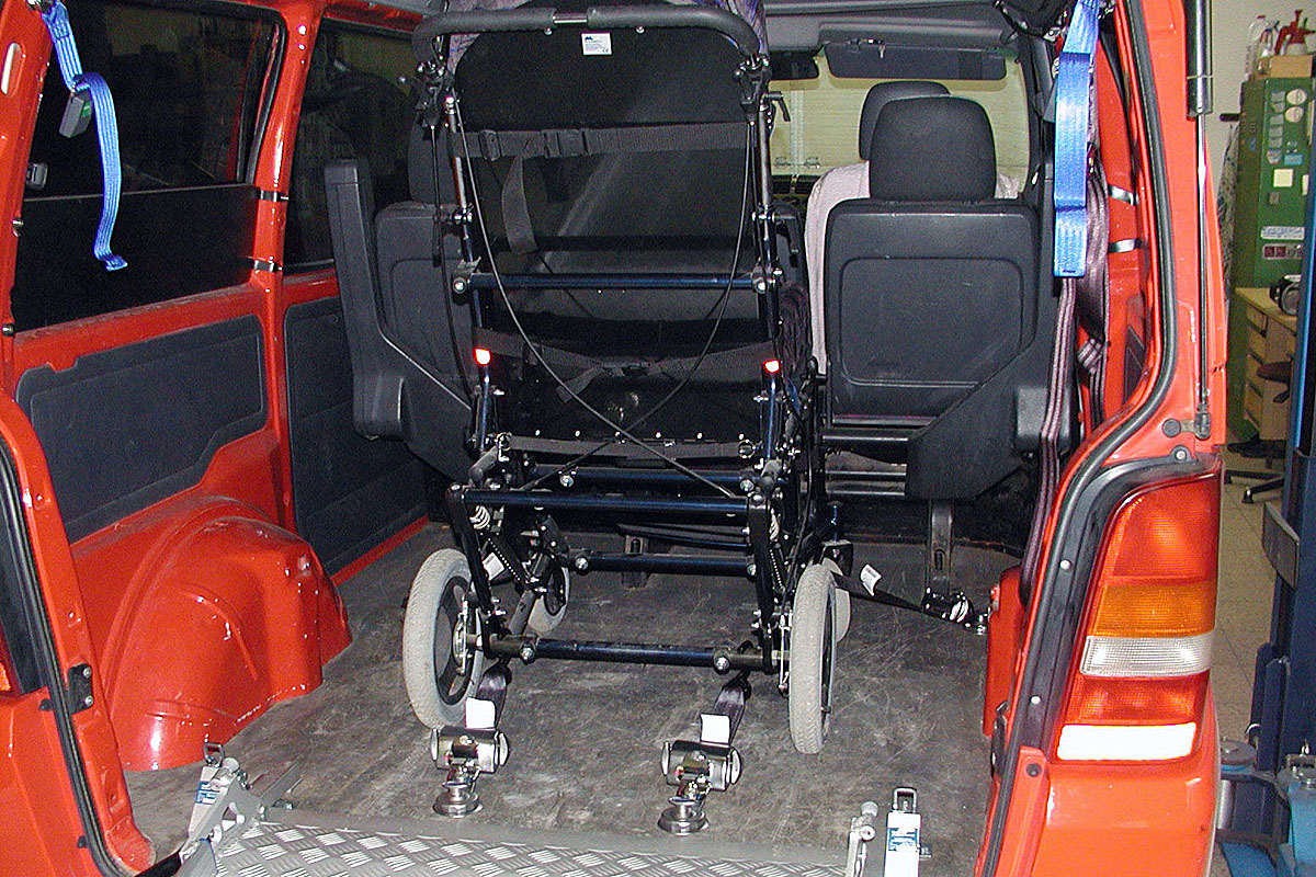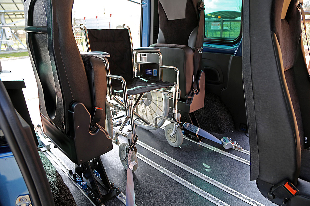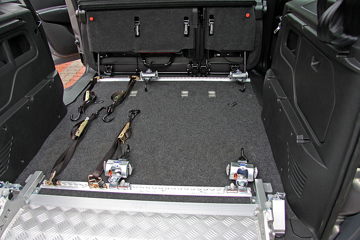 Toto zařízení, zajišťuje v automobilu bezpečné držení invalidního vozíku v příčném i podélném směru za jízdy.