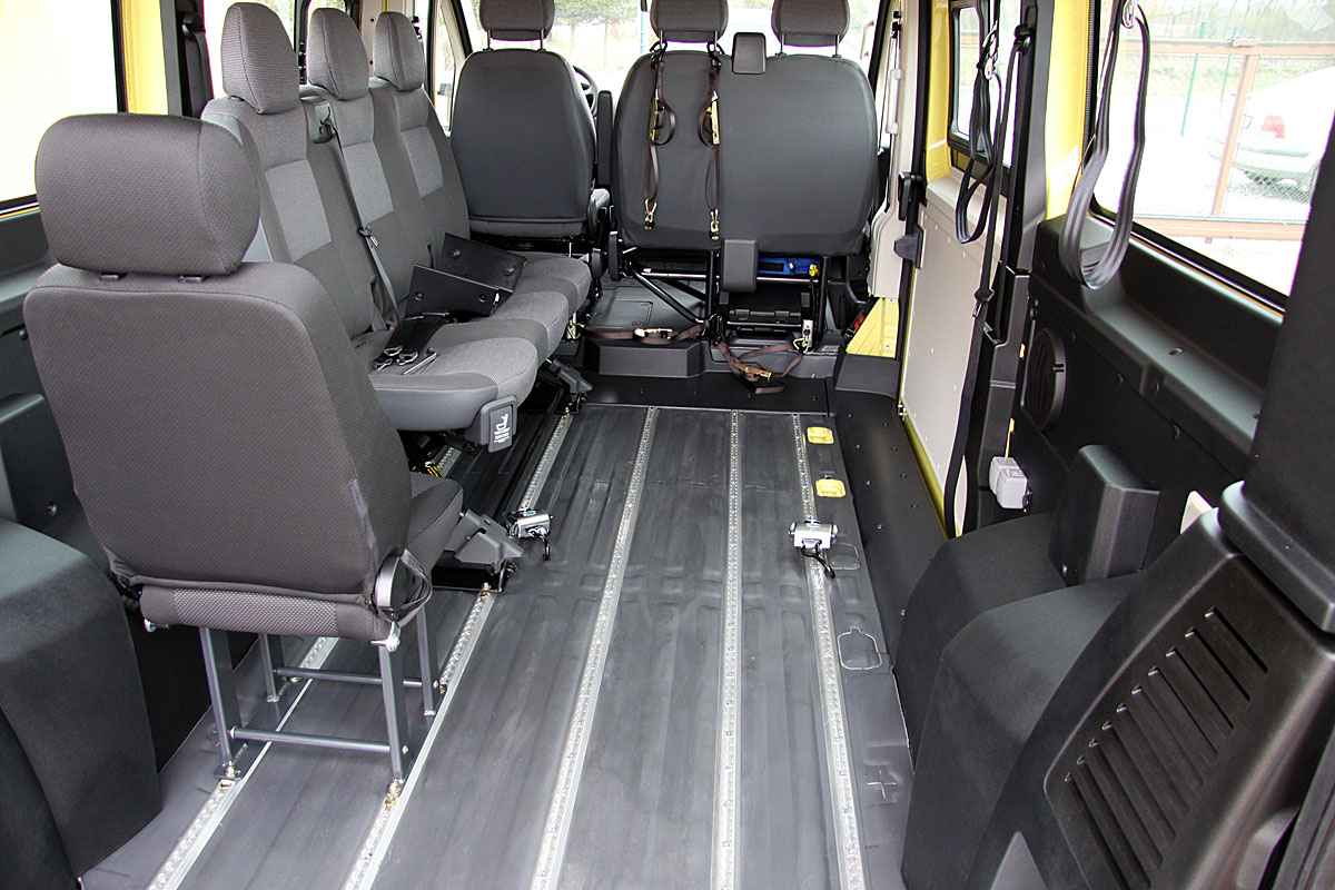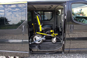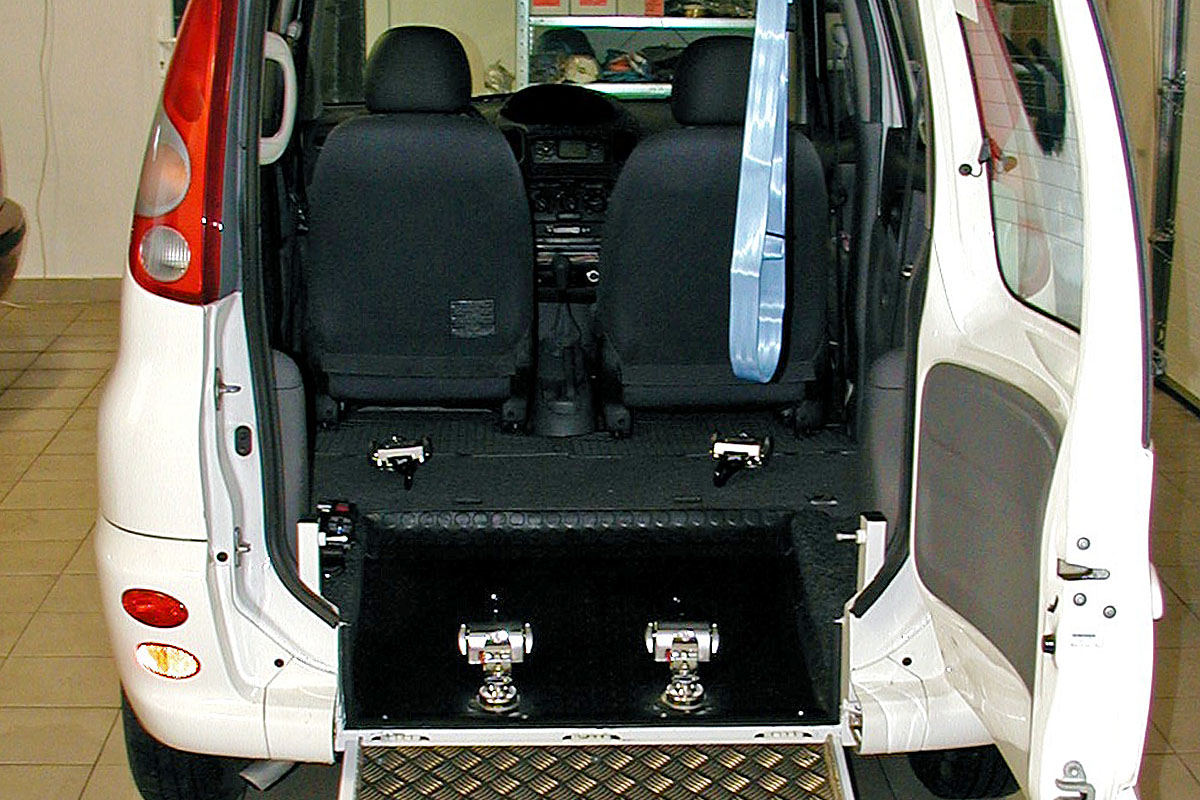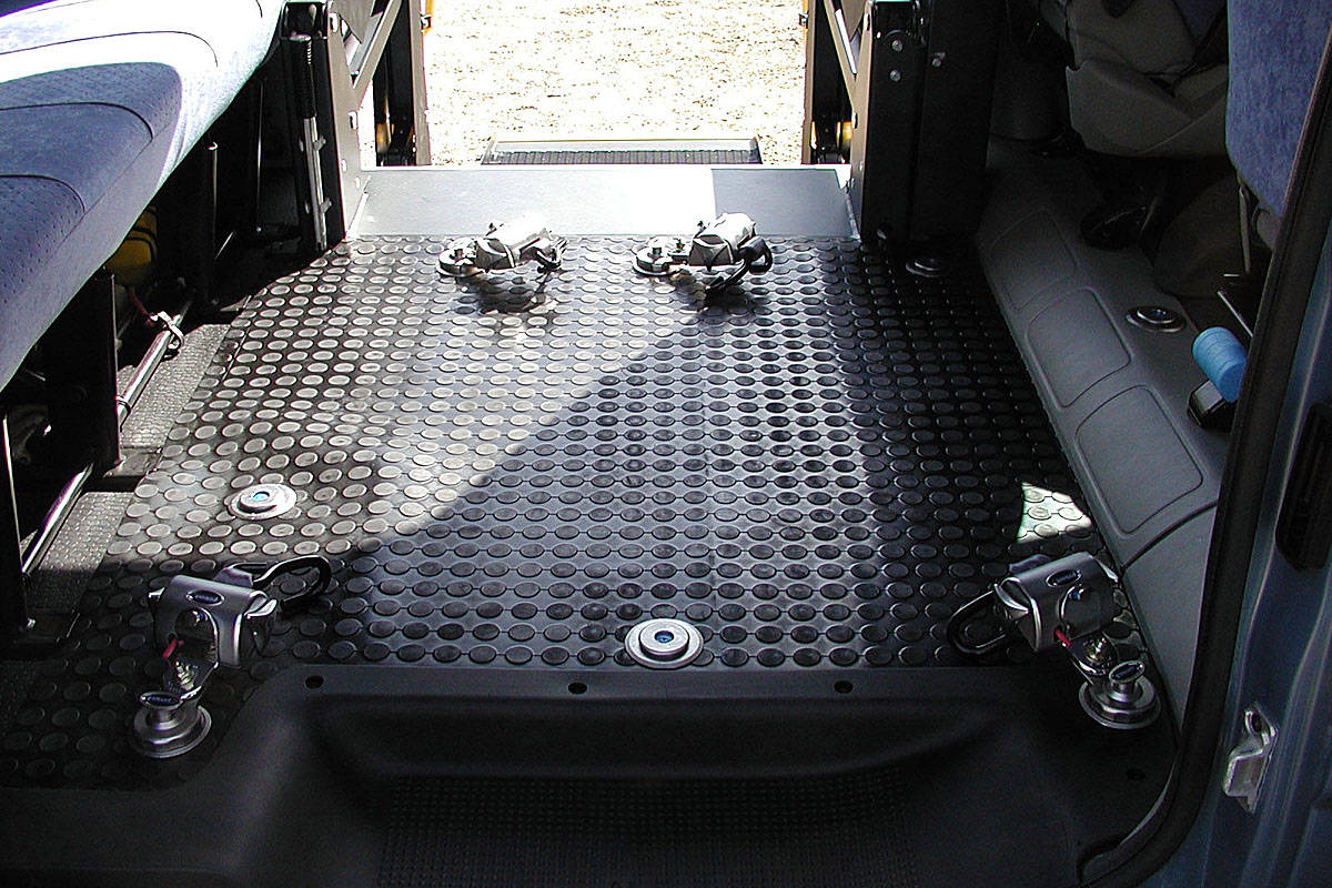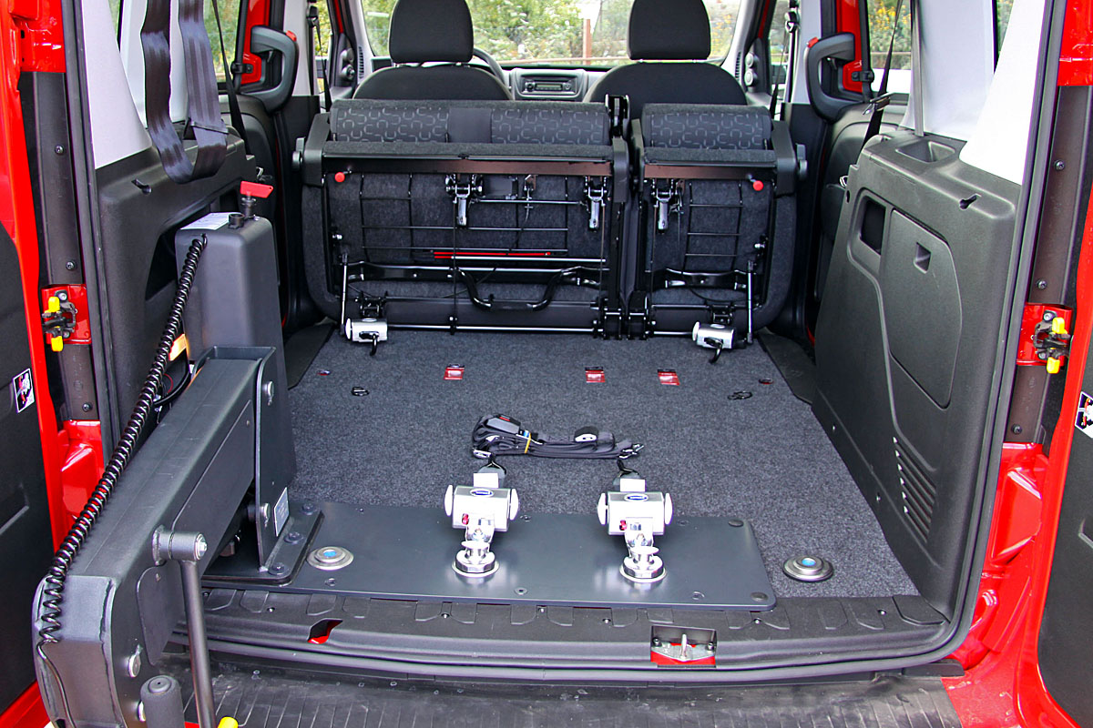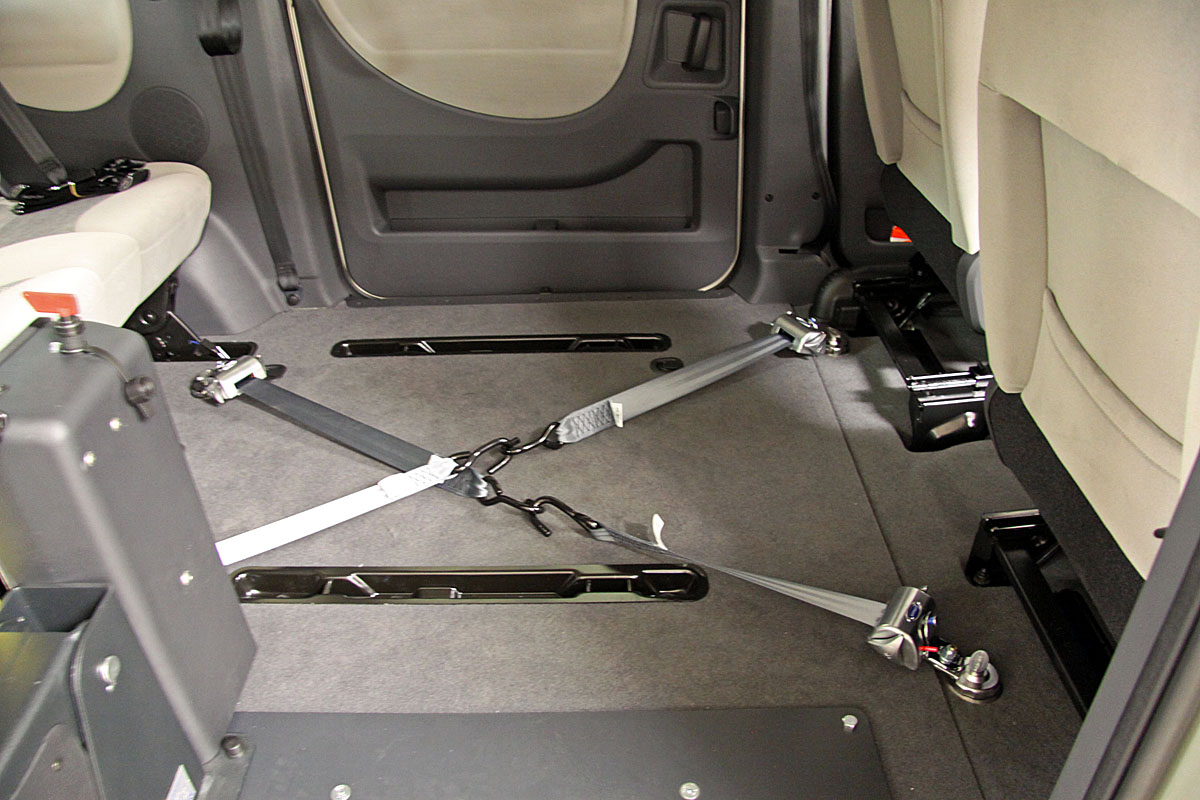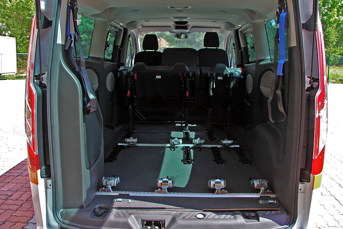 Toto zařízení, zajišťuje v automobilu bezpečné držení invalidního vozíku v příčném i podélném směru za jízdy.